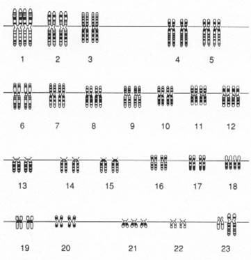 Трнсомии. Трисомией называют появление в кариотипе дополнительной хромосомы. Самым известным примером трисомии является болезнь Дауна, которую часто называют трисомией по хромосоме 21. Результатом трисомии по хромосоме 13 является синдром Патау, а по хромосоме 18 — синдром Эдвардса. Все названные трисомии — аутосомные. Другие трисомики по аутосомам нежизнеспособны, погибают внутриутробно и, по-видимому, теряются в виде спонтанных абортов. Жизнеспособными являются индивидуумы с дополнительными половыми хромосомами. Более того, клинические проявления дополнительных хромосом X или У могут быть весьма незначительными.