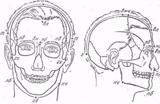 | Угол носовых костей – общий угол лица Указатель выступания лица – ширина носа Общий угол лица – верхняя высота лица Общий угол лица – скуловая ширина Угол носовых костей – верхняя высота лица Угол носовых костей – скуловая ширина Ширина носа – верхняя высота лица |