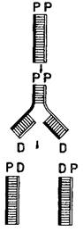 Механизм этого чрезвычайно сложного процесса (см. рис. 12) обеспечивает связь каждой дочерней цепи (D) с соответствующей родительской цепью (Р).