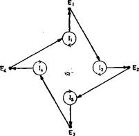 Каждый фермент Е; катализирует воспроизведение следующего носителя информации I;. Он может иметь и другие каталитические свойства, необходимые для осуществления процесса трансляции, метаболизма и т.д. В подобных случаях степень гиперциклической связи больше двух.