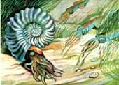 В девоне получили распространение головоногие моллюски аммониты и белемниты (Рис.3), гигантские раки, потомки трилобитов, рыбы (панцирные,двоякодышащие и кистепёрые). Кистепёрые рыбы – предки появившихся в девоне первых земноводных – стегоцифалов.