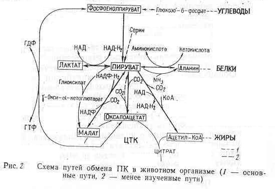 Энергетические вещества тканей почки универсальны для всех тканей организма и представлены белками, углеводами (глюкоза, гликоген и др.), липидами и основными интермедиатами и продуктами их метаболизма (лактат, пируват (рис.2) и др.).