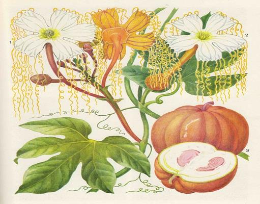 Овощные растения семейства тыквенные: губка, или люффа; кабачок; кривошейка, или крукнек; нара, или акантосициос ощетиненный; огурец антильский, или ангурия; огурец желтый, или момордика; огурец змеиный, или три-хозантес; огурец индийский, или горлянка; огурец мандерский; огурец мексиканский, или чайот; огурец перуанский, или циклантера лопастная; огурец посевной; патиссон; телфайрия стоповидная и западная; тладианта сомнительная; тыква малабарская; тыква фордгукская; ходжосния гетероклита.