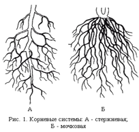 Корень – подземный орган растения, являющийся продолжением оси побега. Он укрепляет растение в земле, всасывает воду и минеральные соли, накапливает запасные вещества, иногда служит для вегетативного размножения. Существуют две основные корневые системы: стержневая и мочковатая.