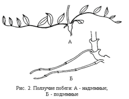 Длинные, тонкие, разветвленные корневища, ненакапливающие питательные вещества, называются подземными ползучими побегами. Они служат для вегетативного возобновления.