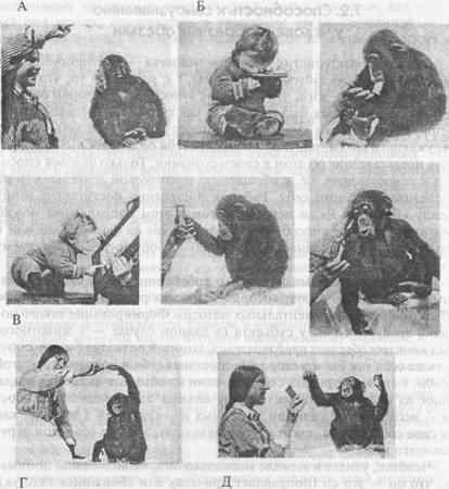Разумеется, такие наблюдения отрывочны и могут показаться не очень убедительными. В то же время следует отметить, что Л. В. Кру-шинский обратил внимание на такие явления, описал их и, что самое главное, дал им вышеупомянутую трактовку еще в конце 60-х годов, до начала ставших впоследствии знаменитыми опытов с «говорящими обезьянами», до появления работы Примэка по «theory of mind», в период, когда только начинались исследования Дж. Гудолл.