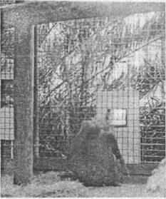 Описанные выше опыты и наблюдения проводились на обезьянах, живших в неволе или с очень раннего возраста, или с рождения. На фотографии (рис. 3) показана обстановка такого эксперимента. Еще более интересным было наблюдение за реакцией на собственное отражение человекообразных обезьян, живущих на воле.