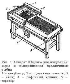 Для инкубации крупной икры лососевых рыб наибольшее применение в рыбоводной практике получили аппараты Коста, Шустера, Вильямсона, а также аппараты по типу желобов и лотков.