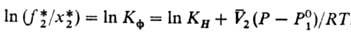 где Кф-коэф. физ. р-римости, равный КH при х2-> 0 и Р-> -> 0; f*2-летучесть газа;