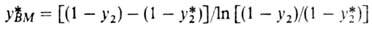 При расчете скорости абсорбции часто используют коэф. массо-передачи, определяемые по гипотетич. поверхностным составам и, следовательно, по гипотетич. движущим силам. Обычно принимают, что коэф. массопередачи, отнесенный к концентрации в газе, Кг [кмоль/(м2 *МПа*с)] обусловлен движущей силой (у2-у*2), где у*2-молярная доля поглощаемого компонента в газе, к-рая отвечает равновесию с жидкостью, имеющей средний объемный состав х2; у2 -средний объемный состав газа в данном сечении аппарата. Тогда получим: