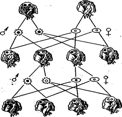 Инбридинг, т.е. принудительное самоопыление перекрестноопыляющихся форм, кроме прогрессирующей с каждым поколением степени гомозиготности, приводит и к распадению, разложению исходной формы на ряд чистых линий. Такие чистые линии будут обладать пониженной жизнеспособностью, что, по-видимому, связано с переходом из генетического груза в гомозиготное состояние всех рецессивных мутаций, которые в. основном являются вредными.