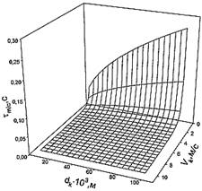 Рис. 4. Зависимость характерного времени микросмешения