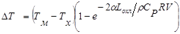 Здесь Тм=Т0 при течении жидких потоков без химической реакции и Тм=Т0+DТад в случае протекания быстрой химической реакции; Т0 – начальная температура жидких потоков, подаваемых в трубчатый аппарат; DТад – адиабатический подъем температуры в зоне реакции; a-коэффициент теплоотдачи (Вт/м2Чград).