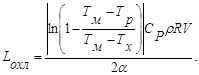 Решая (1) относительно Lохл, можно оценить минимальную длину зоны охлаждения при внешнем теплосъеме, необходимую для поддержания в трубчатом аппарате заданной температуры Тр: