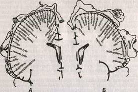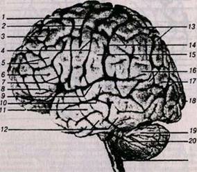 Рис. 3. Схема локализации функций в коре больших полушарий: