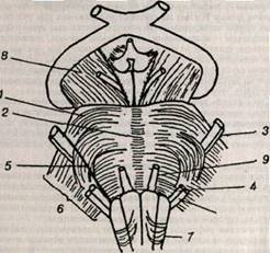 Рис. 9. Сагиттальное сечение ствола мозга: