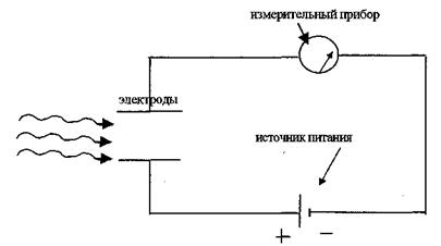 Если к веществу приложить разность потенциалов, то в нем возникает электрическое поле, под действием которого положительные ионы перемещаются к отрицательному электроду, а отрицательные — к положительному электроду. В результате этого в цепи возникает электрический ток. При определенных условиях сила тока пропорциональна интенсивности излучения, воздействующего на вещество.