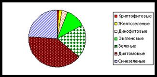 Рис. 1. Соотношение между числом видов отделов фитопланктона озера Белое