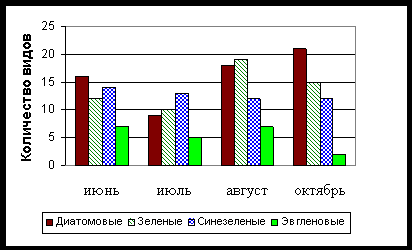 При сравнении видового состава фитопланктона по месяцам мы выявили определенную динамику, которая отражена на рисунке 2.