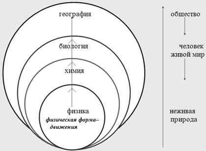 – положение частных наук в их иерархии зависит от уровня сложности исследуемых ими объектов и общности изучаемых ими законов природы;