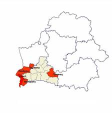 Исследования проводились на крайнем юго-западе Беларуси в пяти административных районах Брестской области (Брестском, Каменецком, Лунинецком, Малоритском и Пружанском) (рисунок 1).