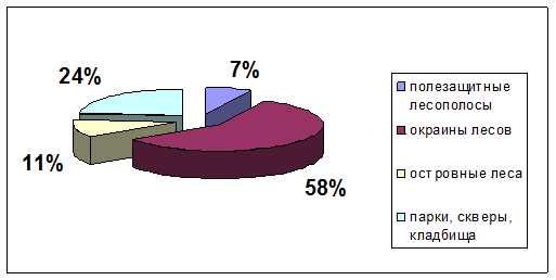 Анализ распределения гнезд по биотопам показал, совы предпочитают окраины лесных массивов (58%), чаще это были средневозрастные сосновые посадки, в меньшей степени – агроценозы (24%), островные леса (11%) и полезащитные лесополосы (7%) (рисунок 3).