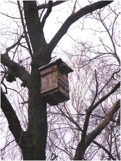 Впервые в Беларуси были проведены работы по привлечению мохноногого сыча в искусственые гнездовья. В потенциальных местах гнездования, где в весенний период отмечалось токование птиц, были размещены несколько гнездовий. Ольховая дуплянка была вывешена на сосне на высоте 13м в средневозрастном сосново-еловом участке (рисунок 8).