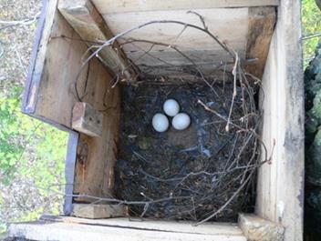 Рисунок 14 - Кладка пустельги обыкновенной в ящике, из которого вылетели птенцы ушастой совы. Фото Кителя Д.