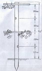 Рябина закрепляется так, чтобы её с изменением глубине снега не сдуло ветром.