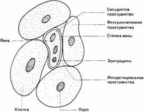 Рис.5. Распределение воды между внутриклеточным и внеклеточным компартментами тела. Внеклеточный компартмент включает сосудистое иинтерстициальное пространства. |