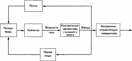 Хотя типы регуляторных механизмов, рассмотренные Кэнноном, как теперь известно, широко распространены в животном мире и включают самые разнообразные физиологические процессы, в регуляции внутренней среды участвуют не только они. Так, например, до недавнего времени считали, что животные усиленно пьют при высокой окружающей температуре в результате обезвоживания, которое возникает при таких охлаждающих реакциях, как потоотделение и одышка. Эта точка зрения полностью соответствует изложенной выше теории гомеостаза: испарение воды необходимо для поддержания теплового гомеостаза в жаркой среде, а это нарушает в организме водный баланс, восстановление которого требует усиленного питья. Однако теперь мы знаем, что у таких видов, как крыса и голубь, питье прямая реакция на температурное изменение, опережающая любое нарушение водного баланса в результате терморегуляции, а не ответ на нарушение.