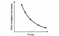 Рис.14. Мотивационная изоклина, связывающая голод и силу сигналов пищи. Линия соединяет состояния, которые вызывают одинаковое стремление к поеданию пищи. |