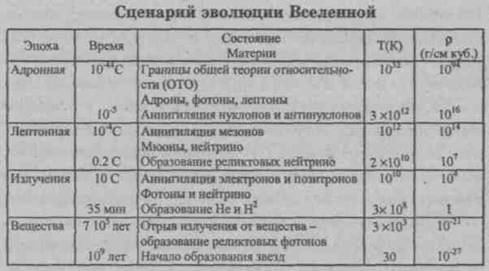 Сейчас ясно одно: чем ближе к «началу», тем более экзотичней становятся законы природы, тем больше возникает вопросов. В заключение приведем таблицу эпох расширения Вселенной с указанием только ключевых процессов.