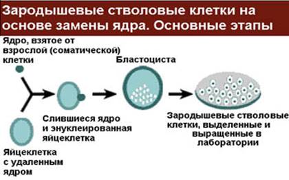 Для "выращивания" этих тканей и органов можно будет использовать стволовые клетки не из взрослых организмов - здесь неизбежна постоянная нехватка, так как клетки необходимо извлекать из органов практически сразу после смерти "донора" - а из клонированных человеческих эмбрионов.