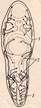 1 – воронка; 2 – начало нефридиального канала; 3 – нефридиальный канал с ресничками; 4 – конечная часть нефридиального канала, открывающегося порой.