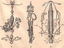 А – Porrocaecum; Б – Contracaecum; В – Parascaris equorum;