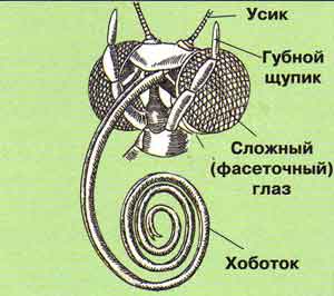 Усики располагаются на теменной части головы и являются органами чувств, воспринимающими запахи и колебания воздуха. Усики также помогают удерживать равновесие при полёте. По строению различают щетинковидные, нитевидные, булавовидные, крючковатые, гребенчатые, перистые типы усиков .
