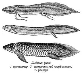 В роботі наведені також ілюстрації ареалу поширення дводишних та особливості їх морфології.