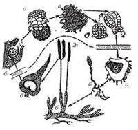Рисунок 4. Чередование поколений в жизненном цикле плауна: а – гаметофит; б – спорофит