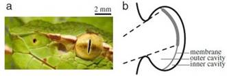 Строение такого органа очень просто. Рядом с каждым глазом располагается отверстие диаметром около миллиметра, которое ведет в небольшую полость примерно такого же размера. На стенках полости расположена мембрана, содержащая матрицу из клеток-терморецепторов размером примерно 40 на 40 клеток. В отличие от палочек и колбочек сетчатки глаза, эти клетки реагируют не на «яркость света» тепловых лучей, а на локальную температуру мембраны.