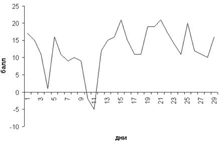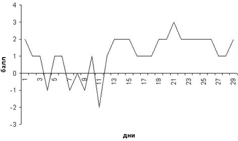 Сводная таблица побиоритмотесту в течение лунного месяца