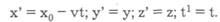 переходе от покоящейся системы отсчета к движущейся вдоль оси х относительно него равномерно прямолинейно со скоростью v системе отсчета будут иметь следующий вид: