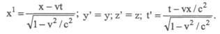 Скромное равенство t1 = t означало, что во всех системах отсчета время течет одинаково, слова "сейчас", "настоящий момент" имеют абсолютный смысл (факт, представлявшийся очевидным до начала XX столетия). Эти уравнения часто называют преобразованиями Галилея. Если же преобразования должны удовлетворять также требованию постоянства скорости света, то они описываются уравнениями Лоренца, названными по имени нидерландского физика Хендрика Антона Лоренца, и имеют вид: