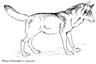 Другое важное средство выражения состояния у волка — его хвост. В спокойном состоянии он свободно опущен вниз, угрожающий волк держит хвост напряженно поднятым вверх над линией спины, вплоть до вертикального положения, при этом за счет вздыбливания волос увеличивается ого размер. Низкорапговые волки при социальном взаимодействии низко опускают хвост, часто поджимая его между ног. В движениях хвоста важна быстрота и амплитуда. Свободное помахивание хвостом наблюдается во взаимодействиях дружелюбного характера. Во время ритуала приветствия помахивание хвостом осуществляется интенсивно, в этом случае «виляние» может охватывать всю заднюю часть корпуса. Низкорапговые волки, приветствуя доминантой, могут вилять задиой частью корпуса с поджатым хвостом. Быстрое, короткое помахивание хвостом характерно для волка в агрессивном состоянии. Мич отмечает полезность учета положений хвоста при наблюдениях взаимодействия зверей в естественных условиях, его позиция хорошо видна с большой дистанции.
