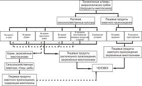Пути загрязнения пищевых продуктов микотоксинами схематично представлены на рисунке 3.