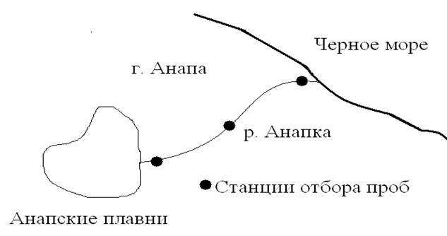 Река Анапка (рисунок 1) начинается с Анапских плавней. Анапские плавни образуются в месте слияния рек Котлама и Куматырь у города Анапа и представляют собой заболоченную котловину площадью 10 км2 . Плавни соединяются с морем рекой Анапкой, длина которой составляет чуть более 1000 м, которая, по сути является протокой.