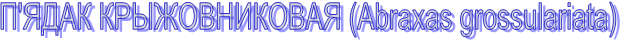 П'ЯДАК КРЫЖОВНИКОВАЯ (Abraxas grossularіata) її гусеницю часто можна зустріти в наших садах. Вона біла у великих чорних плямах на спині, з жовтими боками в чорних плямах і крапках. Так само строкато пофарбована і метелик: крила білі в чорних і жовтих плямах (розмах - близько 4 див), чорні плями маються і на жовтому черевці. Метелика літають у червні - липні і на нижній стороні листів смородини або аґрусу відкладають яйця, з яких через 12 днів виходять молоді гусениці. Вони харчуються до кінця літа, потім скріплюють шелковинками лист, падають разом з ним на землю і там зимують. Навесні вони знову піднімаються на рослини і закінчують своє харчування. Окукливаются прямо на листах або стеблах, прикріплюючи до них шелковинками.