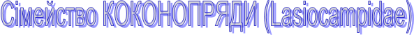 Сімейство КОКОНОПРЯДИ (Lasіocampіdae) До сімейства відносяться великі або середньої величини метелика з товстим волосистим тілом. Передні крила в них більше задніх; хоботок скорочений, тому метелики не харчуються. Вусики гребенчатые, у самців пір'ясті. Великі, 16-ногие, покриті волосками гусениці живуть переважно на деревних рослинах, іноді "суспільствами". Лялечка в павутинному коконі, чому в практиці представників цього сімейства часто називають шовкопрядами. Деякі види можуть завдавати великої шкоди лісовому господарству