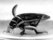 Другие плотоядные жуки ушли в воду. Таковы плавунцы, чьи хищные личинки образно называются "саблезубыми тиграми мира насекомых". Они и взрослые жуки нападают и на мальков рыб. Все вы на поверхности спокойной воды прудов и заводей, наверное, видели мелких черных жуков — вертячек, описывающих в поисках пищи круги и причудливые вензеля.