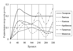 Рис. 2. Радиальная скорость A . terreus на сахарах